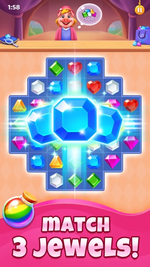 -Each game lasts 90 seconds and try to match jewels as much as you can!
