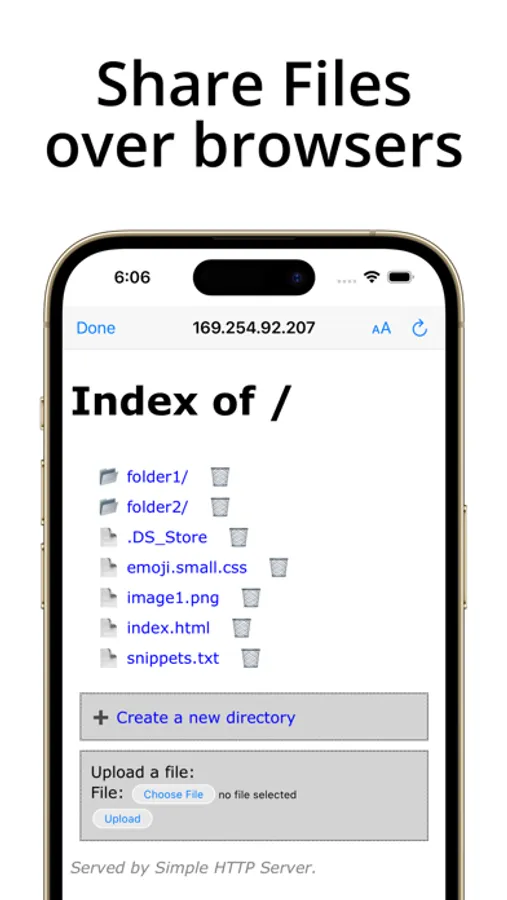 - On iPad, you can browse files/folders via Safari with running the web server on the same device, thanks to multitasking.
