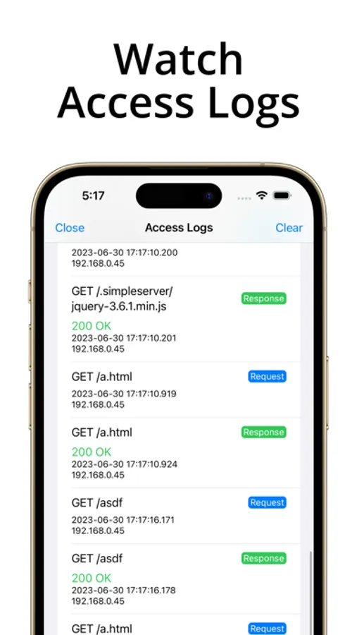 - Support Access Logs displaying HTTP method, URL, remote IP address, and access time of requests and responses.
