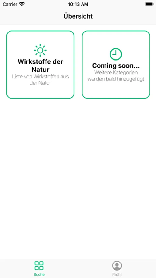 Neben den Wirkstoffen der Natur werden zukünftig weitere natürliche Kräuter in der App hinzugefügt, um eine weitere Auswahl an noch mehr Kategorien zu ermöglichen!