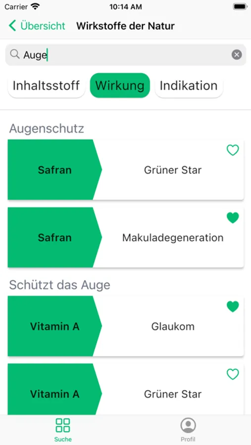 Du kannst einzelne Inhaltsstoffe, Wirkungen oder Indikationen favorisieren, um sie zu einem späteren Zeitpunkt schnell wiederzufinden.