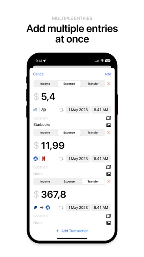 • Add multiple transactions at once