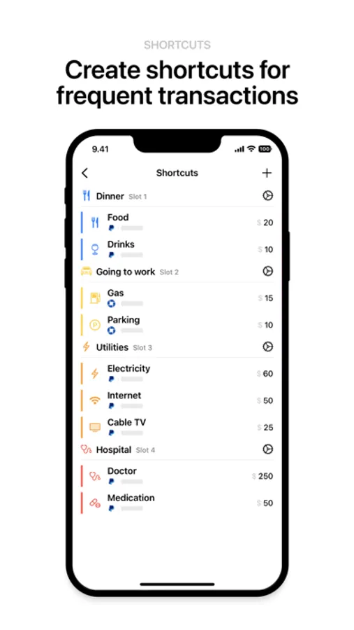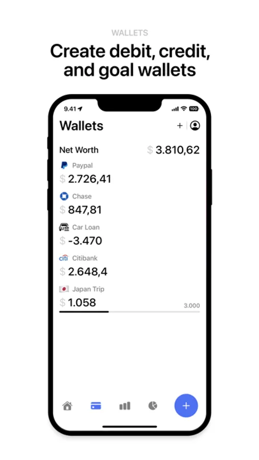 • Create debit, credit and goal wallets