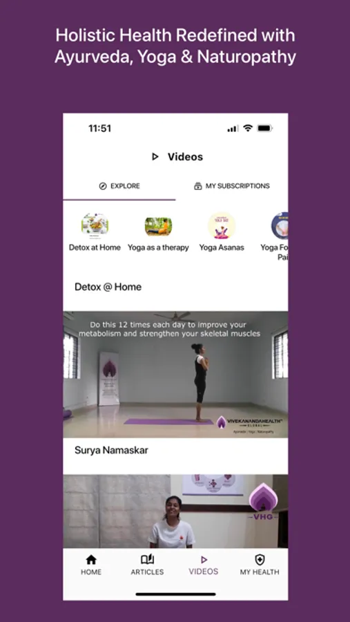 At Vivekananda Health Global – VHG, health and well-being management is a science. Its holistic health redefined: Ayurveda maintains health of healthy and treats disease of the ill; Naturopathy augments innate healing process of your body; Yoga harmonizes your mind, body and soul.