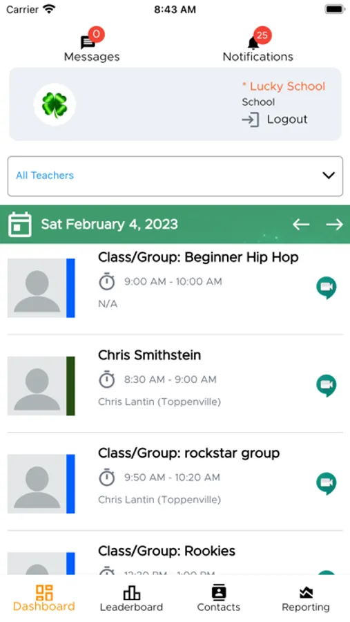 This App is designed for TeacherZone Schools. It includes a Front Desk that allows for students to easily check in on a phone or tablet when they arrive for private or group lessons. Also, it allows Administrators to manage all students for the day including take attendance, make notes and schedule changes. It also includes leaderboards for gamification, chat with Students and Parents and Attendance and Payment Reporting.