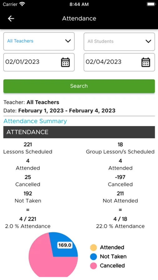 Check In: Put on tablet so students can search their name and check in for private lessons or group classes