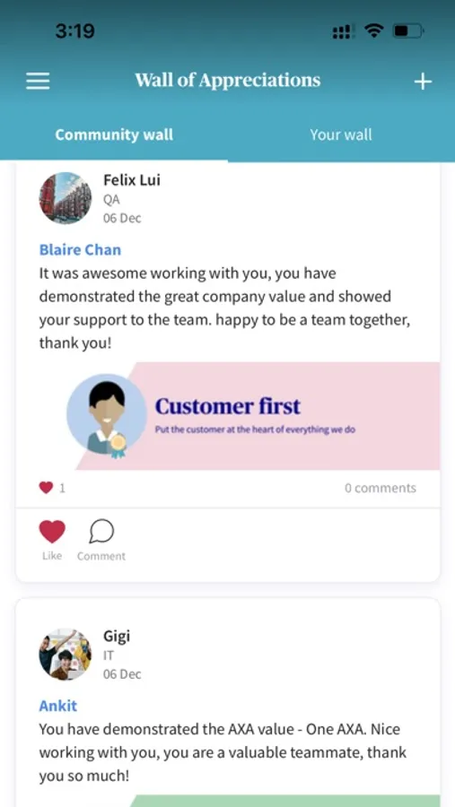• Appreciation Wall: Send and receive appreciation messages to recognize achievements and excellent performance of different users.
