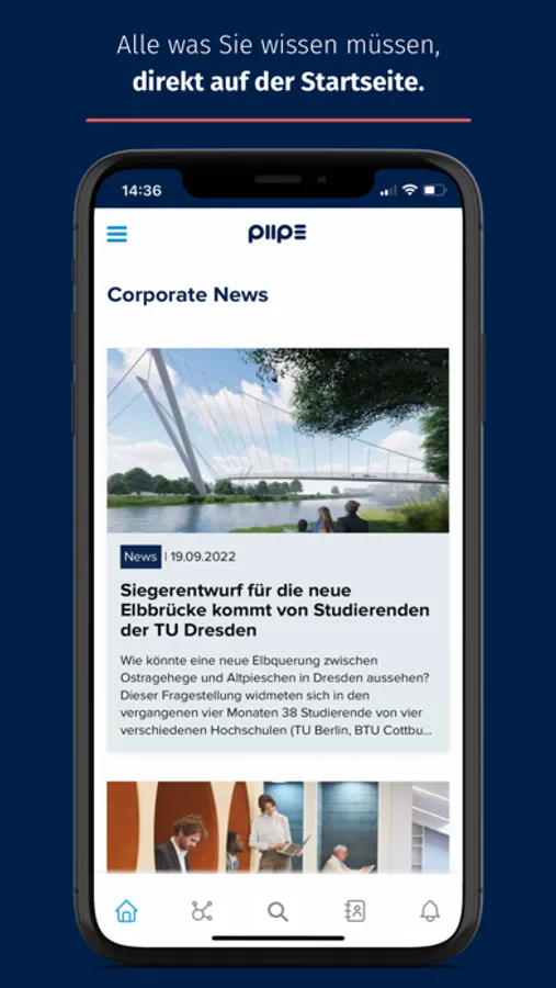 Mit PIIPE Workplace realisieren Sie die Kommunikation der Zukunft an einem Ort, wo alles Wichtige zu finden ist und der alle miteinander verbindet. News, Inhalte und Wissen werden KollegInnen personalisiert, intelligent und übersichtlich kommuniziert. Mit standortübergreifender Vernetzung und direktem Zugriff auf alle Systemapplikationen.