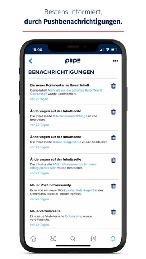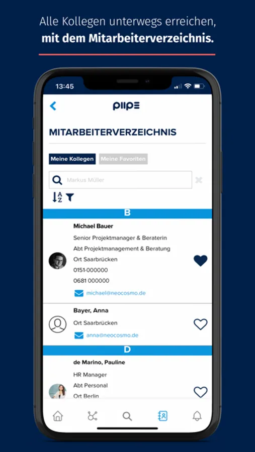 Mit der PIIPE Workplace App schaffen Sie einen mobilen Zugang zu allem, was für Ihre KollegInnen wichtig ist.