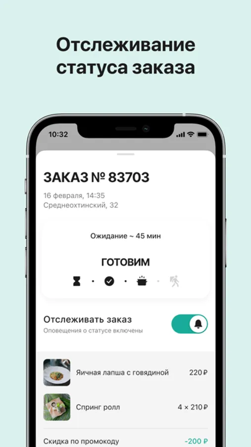 В приложении вы можете ознакомиться с актуальным меню, акциями и новинками.