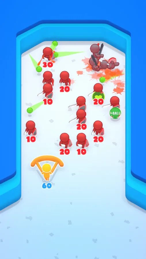 This is not a classic brick breaker game! Swerve to throw the balls and knock down the stickman. Try to knock down as many stickman as possible before they reach out to you. Collect all of the bonus items to get additional balls! But be careful don't lose any ball!
