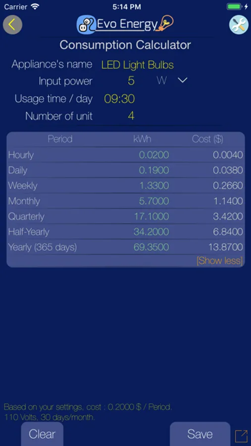 Try calculate for the estimate running cost of energy consumption with EvoEnergy app.