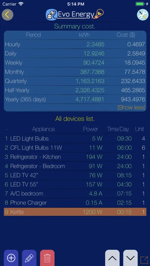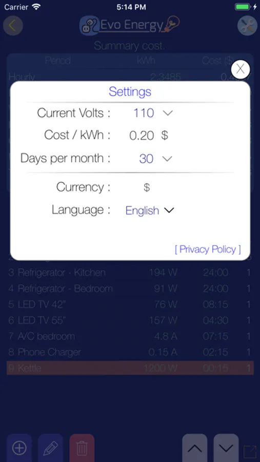 EvoEnergy, The easy to use energy consumption calculator that helps you to calculate your household electricity cost for running various electrical appliances or devices. And helping you save power consumption costs.