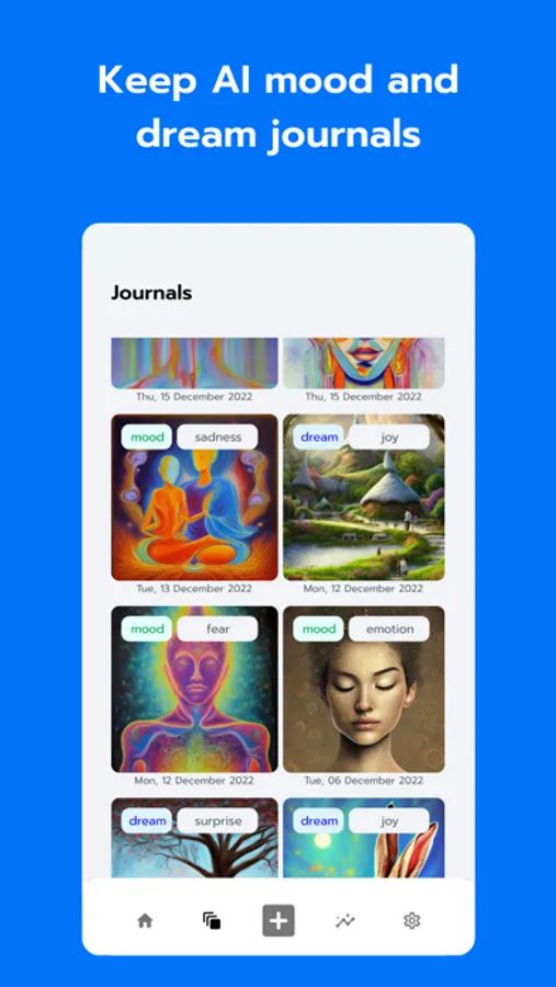 • AI credits are used to run AI predictions such as mood counselor, dream counselor, mood painting, dream painting and meditation teacher. Each AI usage costs 1 credit. After you finished your 10 free AI credits, you need to subscribe to use AI tools in the app.