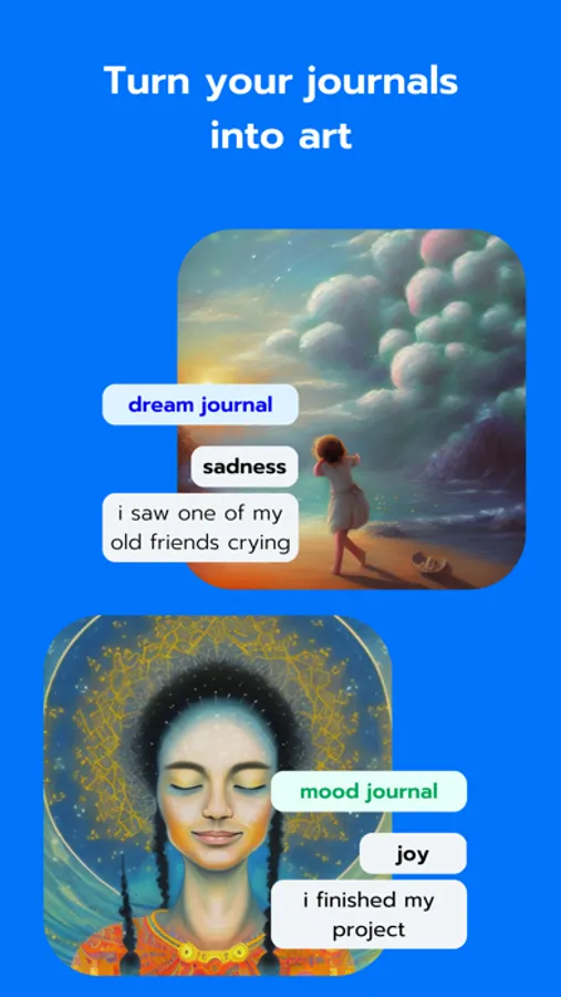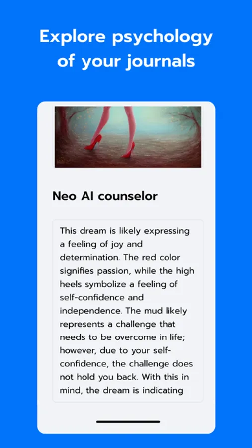 Neo therapy creates AI painting from your mood and dream journals. This painting acts as visual representation of your thoughts, feelings and dreams which can be used for further reflection.