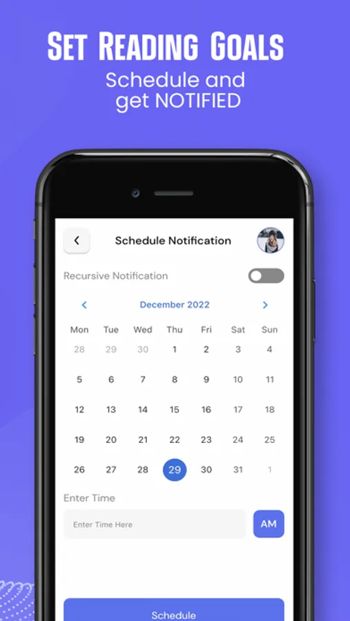 • Schedule your desired days and times for your friendly reading reminders.