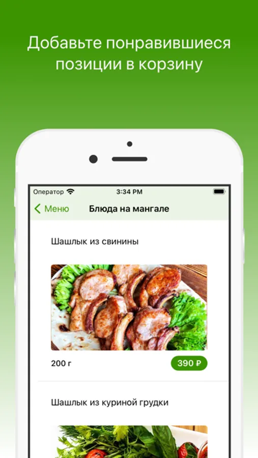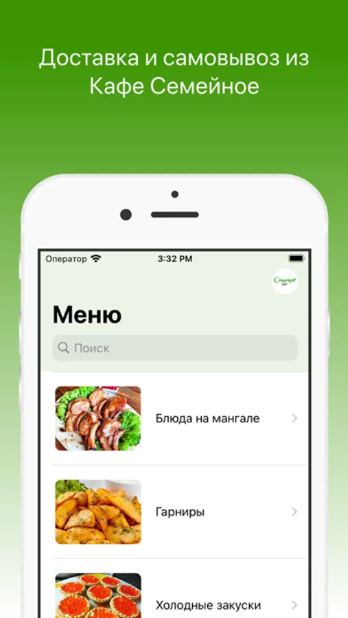 Как сделать заказ в приложении “Кафе Семейное”: выберите понравившиеся позиции из меню, добавьте их в корзину и перейдите на экран оформления заказа (по нажатию на иконку корзины).