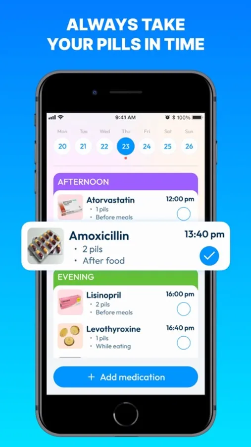With a few simple steps, you can add medication, get reminders for taking pills, and receive constant tracking of your health progress. Just enter the name of the medicine, the interval between doses, and the time. You can even customize your medications with beautiful colors, photos, or sounds. Download Medicine : Pill Reminder App and never forget about your health!
