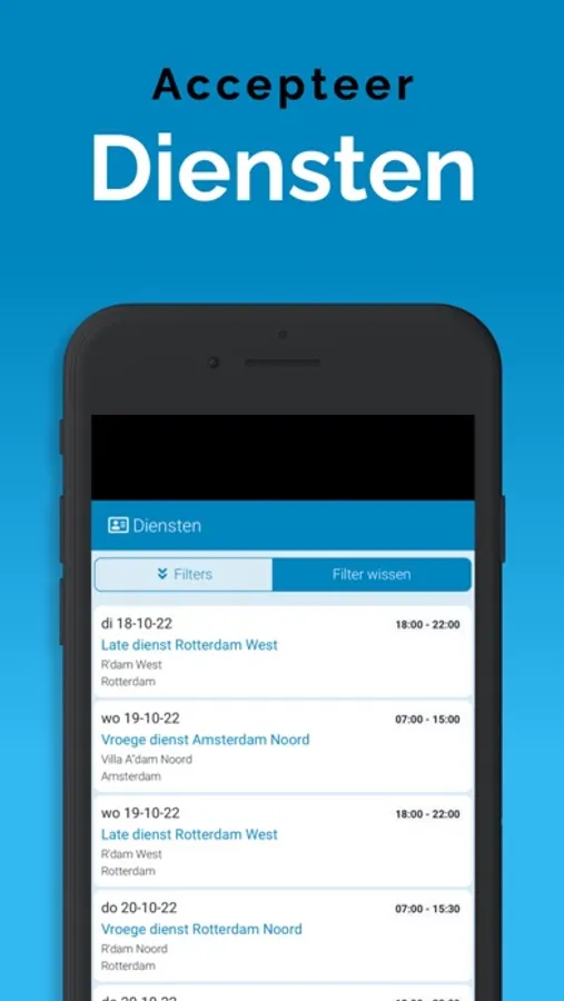 De App is gekoppeld aan het systeem waardoor informatie altijd up-to-date is, via een overzichtelijk dashboard. Bovendien komen belangrijke meldingen, als nieuw beschikbare opdrachten, via een push melding binnen op het apparaat. Zo zie je niets over het hoofd. Ook wijzigingen worden direct zichtbaar, ook in de agenda. Je bent dus altijd op de juiste plaats aanwezig.