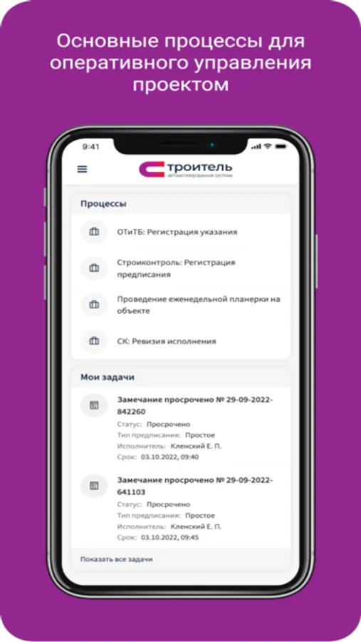 ИТ решение для управления процессами в строительстве, которое включает в себя модули: Производственное планирование, Проведение совещаний на объекте, Цифровой технадзор, Контроль требований ОТиТБ, Сдача работ, Мониторинг и контроллинг объекта.