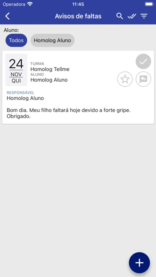 Aviso pelos alunos/pais à escola de eventual falta à aula;