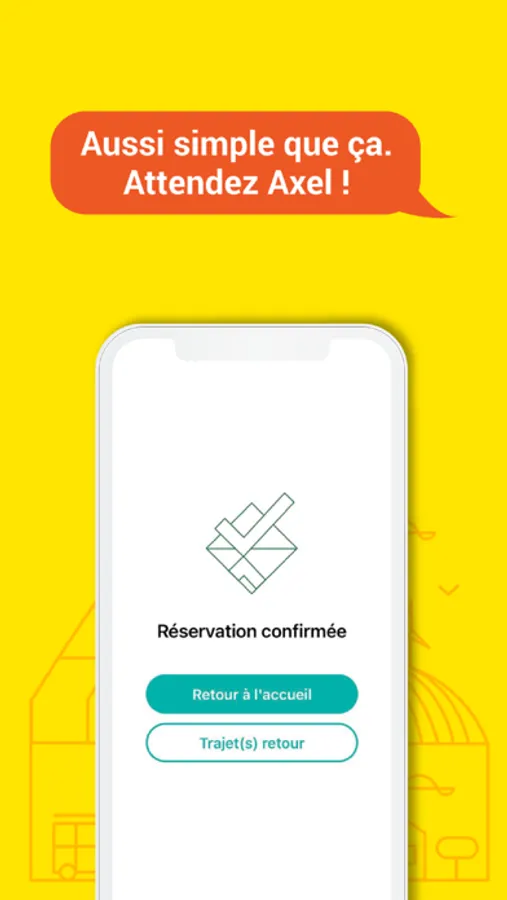 - Quelques minutes avant l’arrivée d’axel, l’application vous rappellera votre trajet par notification. Vous pourrez visualiser votre véhicule à l’approche ainsi que votre temps d’attente restant.
