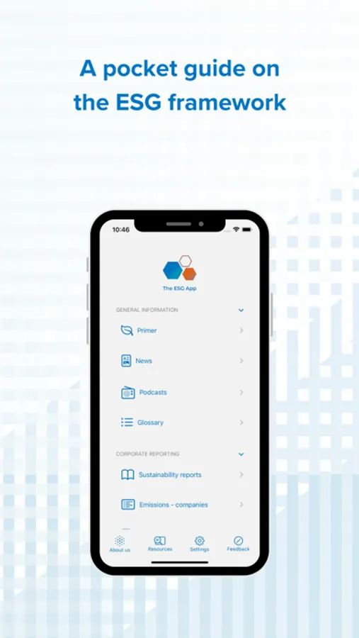 The ESG App is a pocket guide on the framework for sustainability in business. We provide convenient access to concepts, regulations, guidances, data and insights on this topic of growing importance in business strategy and corporate reporting.