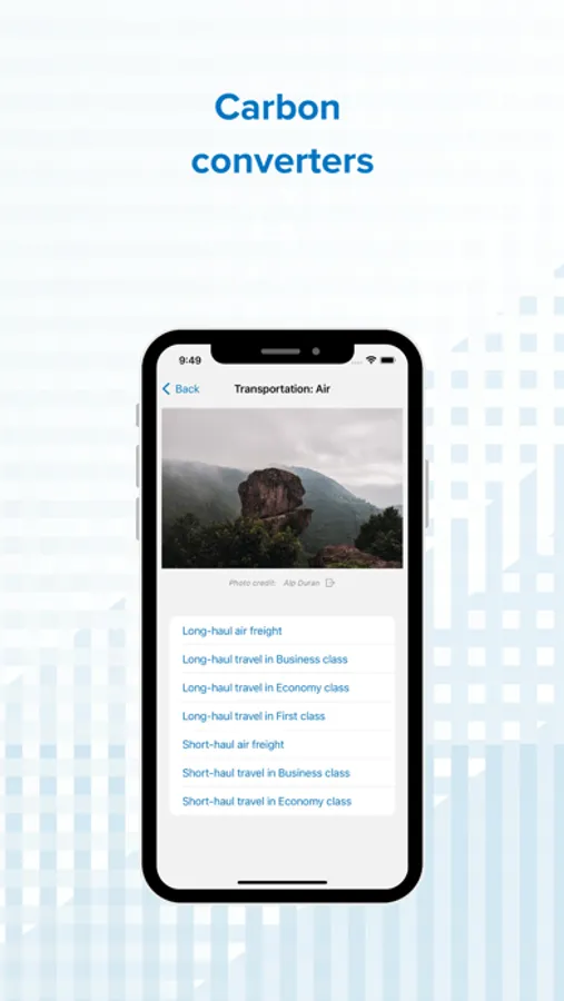 * Carbon converters - activities-to-carbon emission converter (e.g., kg CO2e per passenger-km for air travel)