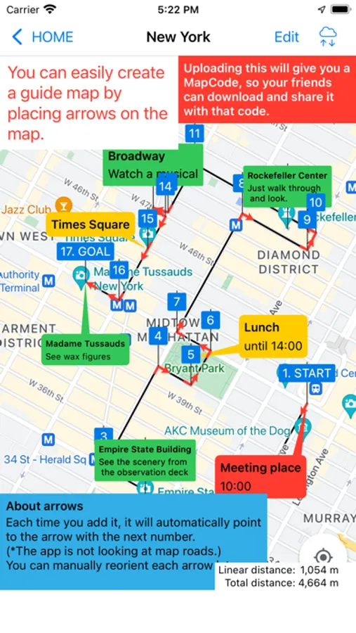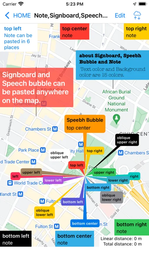 If you set the text you want to display, the color and size of the text/background, etc., a memo with the set contents will be placed together with the map.