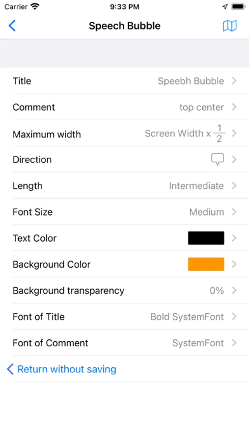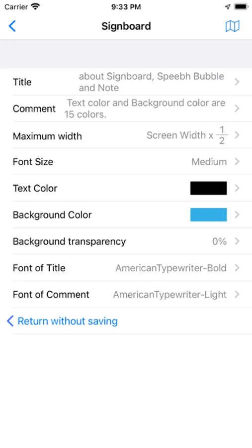 When you set the text you want to display, the color and size of the text/signboard, etc., the set contents of the signboard/balloon will be placed on the map.