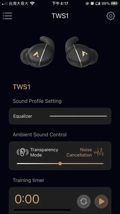 A long press on the TWS1 Earbuds starts the App’s workout timer. Users can set the time from 10 seconds to 59 minutes in the App and the TWS1 Earbuds remembers the setting.
