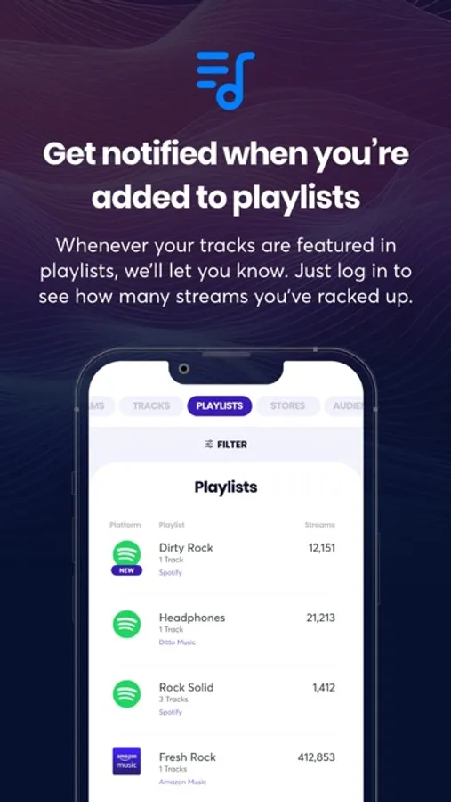 We’ve empowered and supported independent musicians for over a decade with distribution, promotion, publishing and more. Download the Ditto App now and dive into your music data directly from your phone.