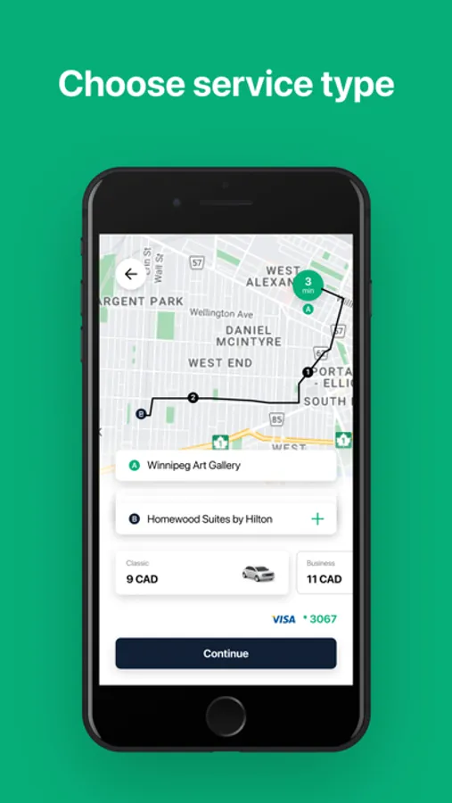 iCAB is an easy and affordable rideshare in Winnipeg, Canada. Order a taxi online on your phone. If you need affordable travel - register iCAB with your phone number. Once your account is ready, order a cab online and choose the service with the driver. After you make a booking, the app will alert you when the driver has arrived. After the payment the bill will be sent to your email.