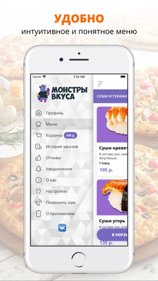 Приложение Монстры вкуса — это удобный способ заказа еды домой или в офис! Мы готовим наши блюда из качественных свежих ингредиентов и доставляем еду быстро и бережно.