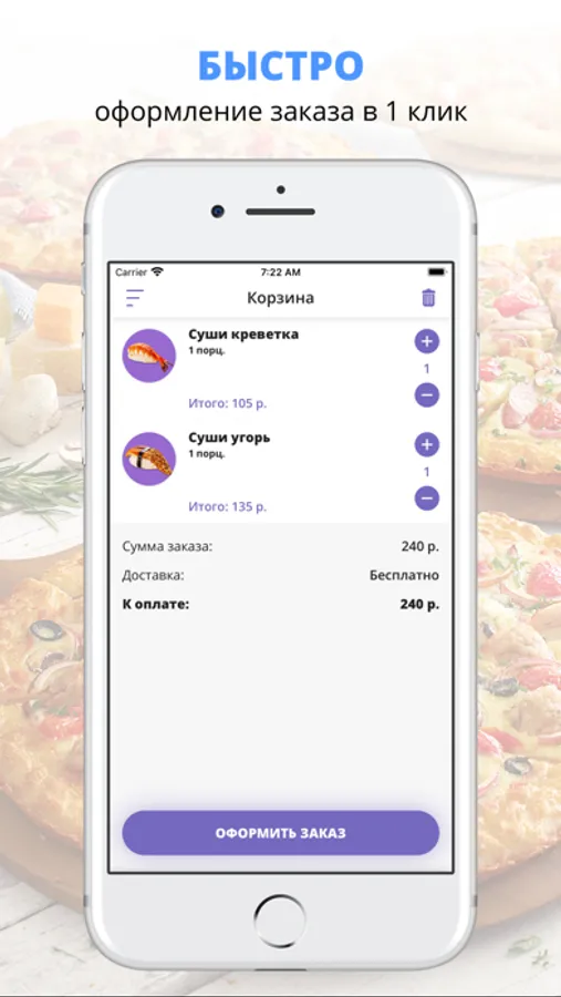 Скачивайте наше приложение, оформляйте заказ и наслаждайтесь любимой едой, где бы Вы ни были! Приятного аппетита!