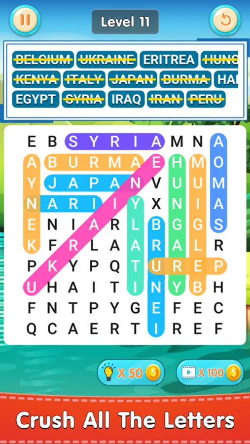 The game is easy to play, slide the letter up, down, left, right, diagonal in any of the eight directions. Search and find all hidden words in the grid. Increase your vocabulary and exercise your brain!