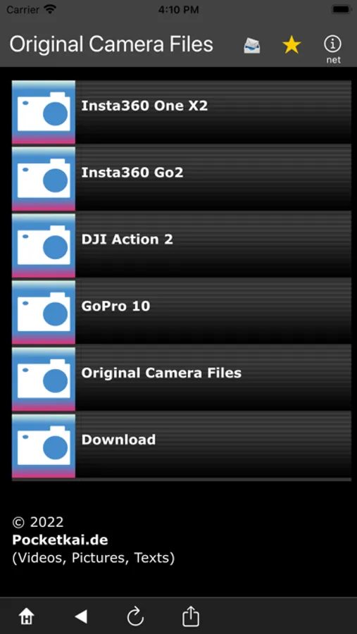 There are thousands of cameras on the market, here is a small part - original camera files. Do you want to compare the image quality before buying a new or used camera? Photo, video, 360°. More cameras will be added over time. You can send yourself the download link by email and download and view the files on your PC or Mac. Cameras: Insta360, GoPro, DJI Action, Sony, Panasonic, Xiaomi, Lenovo, 360° Cameras and more..