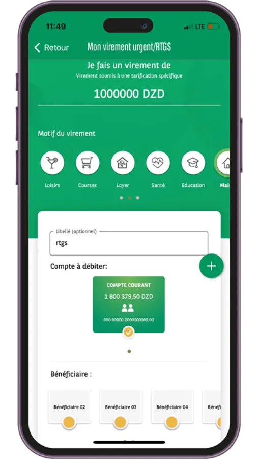 • Effectuez vos virements entre vos comptes, vers des comptes BNP Paribas El Djazaïr ou vers d'autres banques