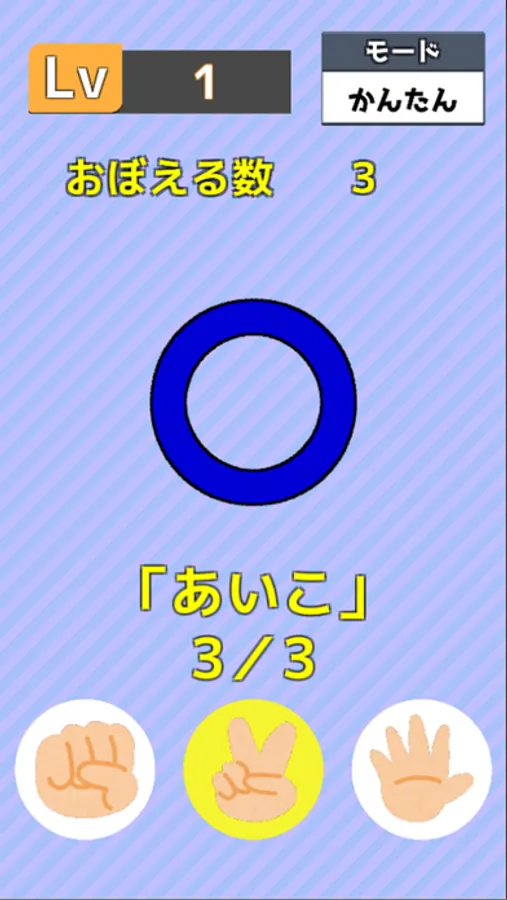 正解するとレベルが上がり、一度に覚える手がどんどん増えていきます。