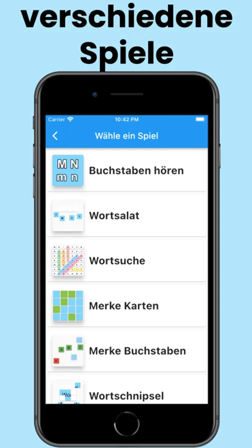 Es gibt verschiedene Spiele mit denen Nutzer spielerisch Wörter üben können.