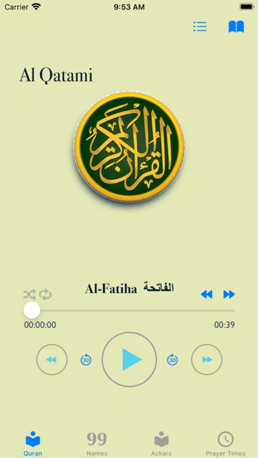 Complete Quran read and listen to audio, 99 names of Allah, Prayer Times, Daily Azkar, Daily and Friday notifications