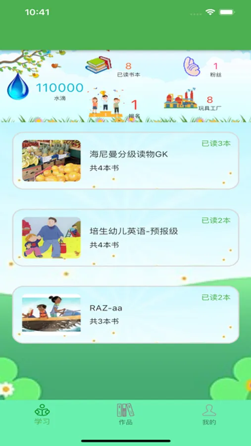 小朋友在通过有趣的英语比赛中,不仅能获得相应的水滴奖励,获得排名激励,获得礼物奖励,还能潜移默化的把英语的学习了。