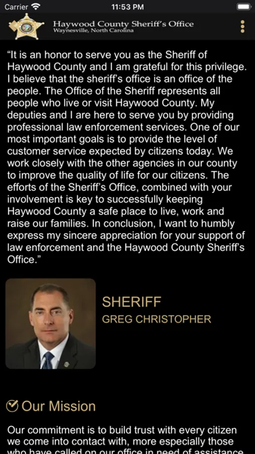 The Haywood County Sheriff's Office is open 24 hours a day, seven days a week regardless of holidays or adverse weather conditions.