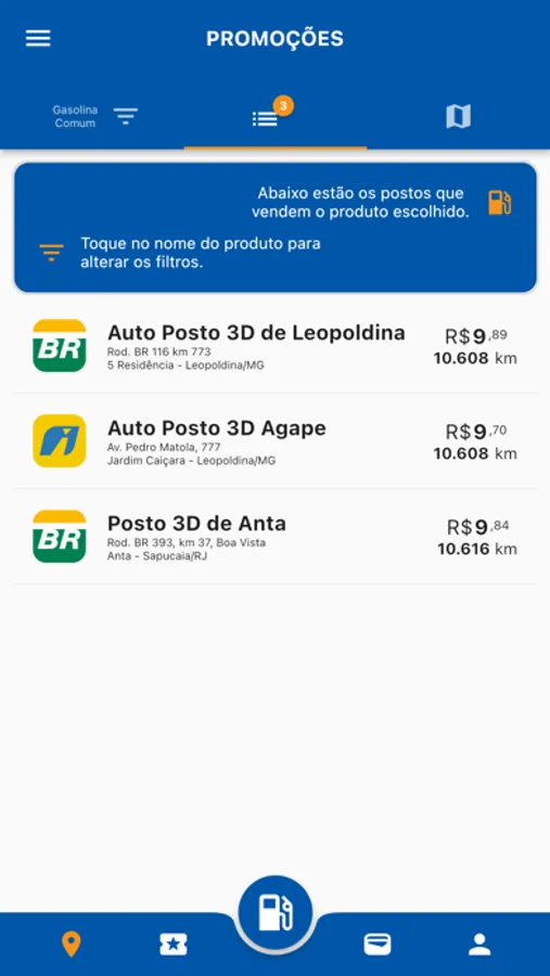 Com o aplicativo você pode abastecer em qualquer posto do Grupo 3D nos estados do Rio de Janeiro e Minas Gerais.
