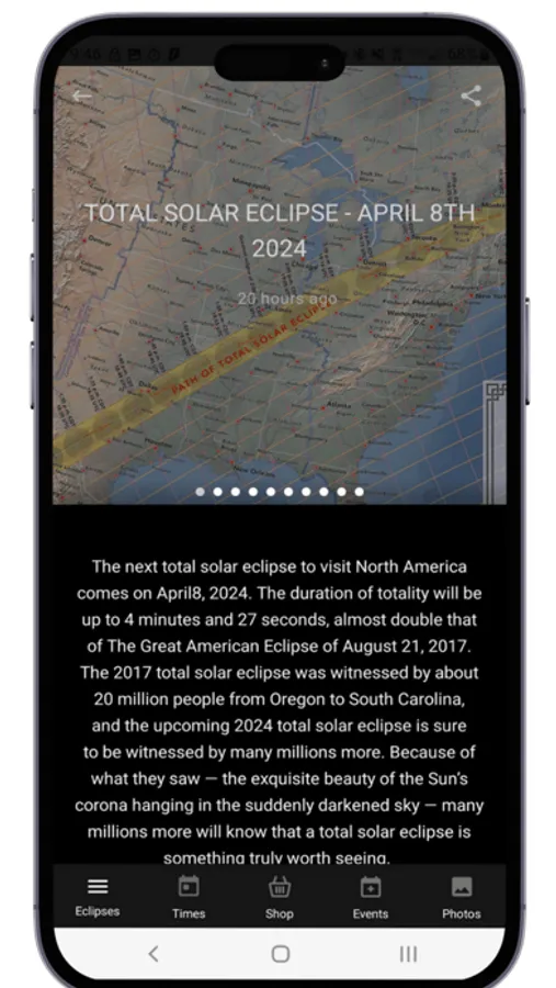 All the information you need for the upcoming 2023 and 2024 solar eclipses over North America. Find start times, duration, eclipse facts, beautiful photos, local events, and one-stop shopping for all your eclipse viewing needs.