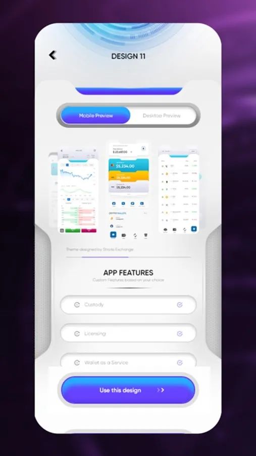 We designed Strata EXC White Label Builder to be easy to use and offer a broad range of customization options. You can open 15 distinct app designs, each with its own specific features and layouts best suited to your needs. Whether you need a desktop or mobile solution--we got you covered! We have two excellent options for you--you can either choose a pre-made solution, or we can design a brand new, personalized solution from scratch. Getting started takes less than five minutes; you only need a username and password to begin your solution. After that, one of our agents will reach out to you and help set things up so that you join the blockchain revolution.