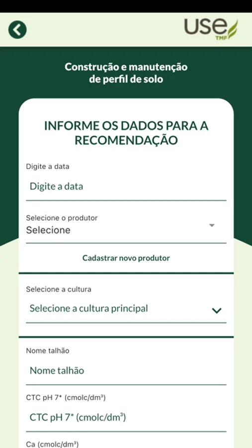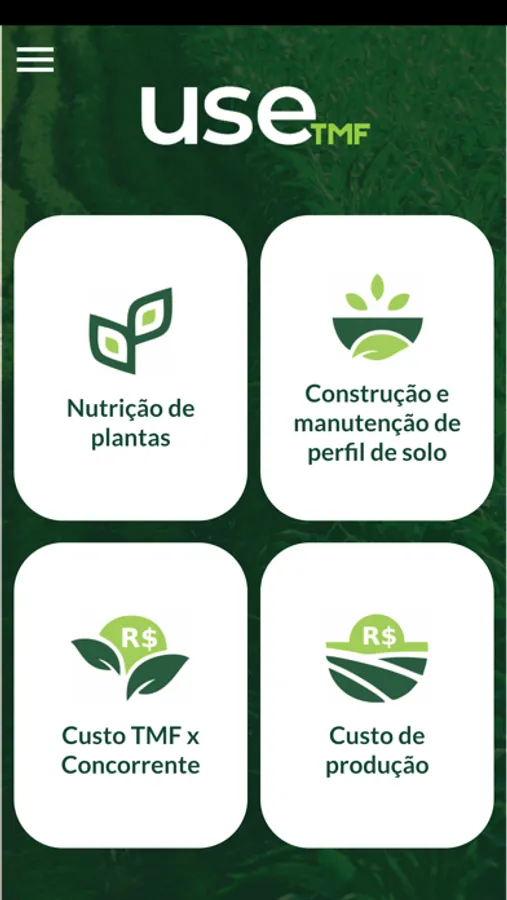 O app USE TMF tem por objetivo de facilitar a escolha e recomendação de linha de fertilizantes TMF para o produtor.