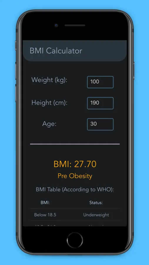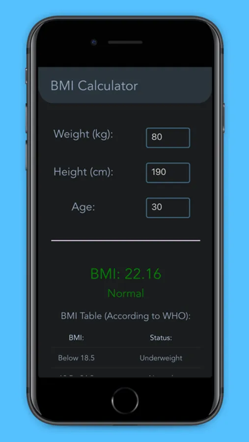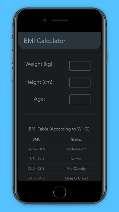 This minimal BMI Calculator lets you easily Calculate your BMI.