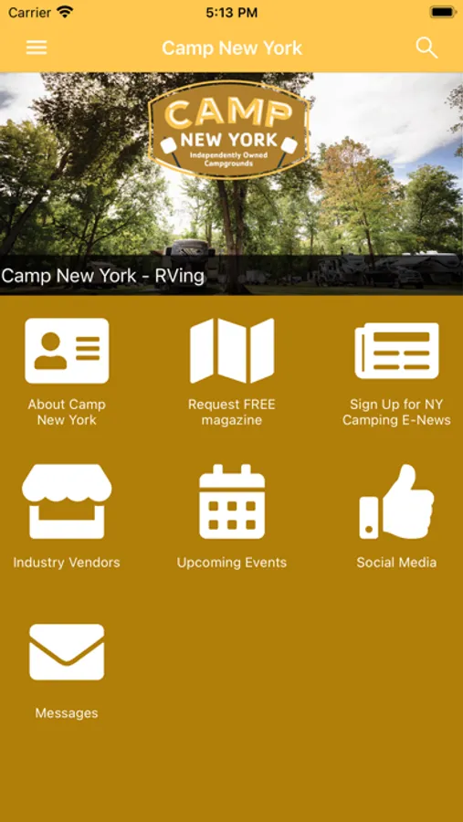Descriptive listings and links for hundreds of New York campgrounds and RV parks, any one of which you can save in your favorites list on the app to get even more information and receive regular updates and event notifications customized by you for frequency and type.