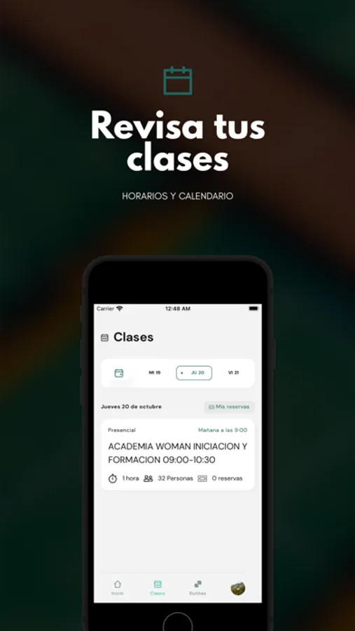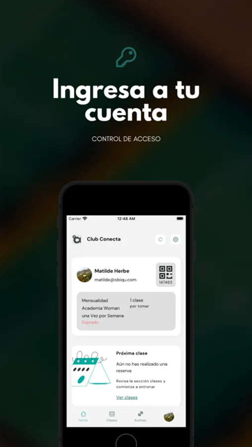 Te permitirá acceder rápidamente a tu perfil, reservar tus clases y ver el trabajo del día de tu centro deportivo.